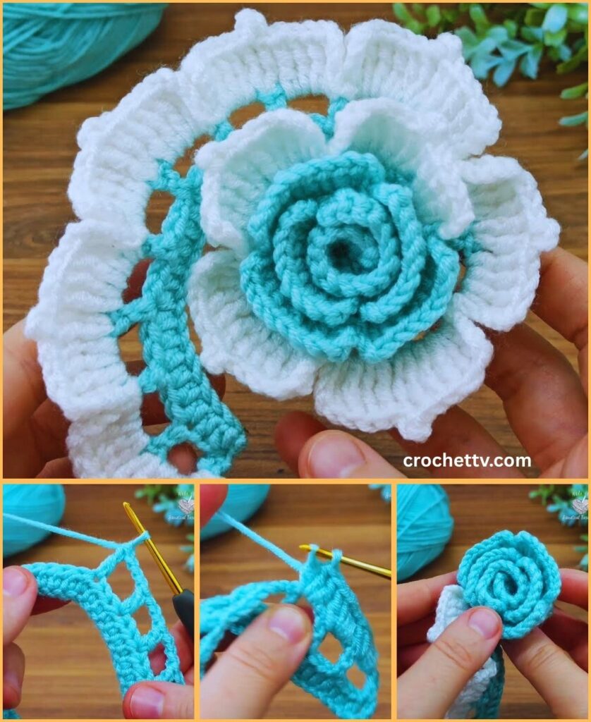 Let’s Crochet Your Easy Two-Color Rose Flower Motif!
