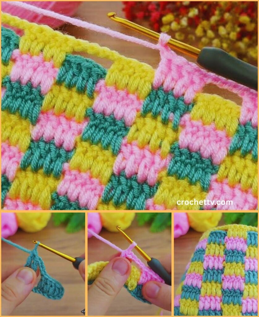 - Granny Stripe Stitch: Made with clusters of 3 double crochets.