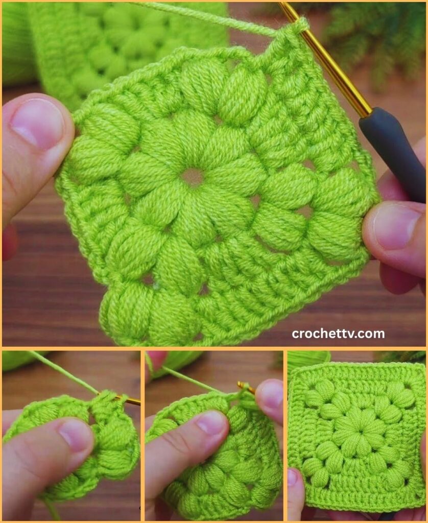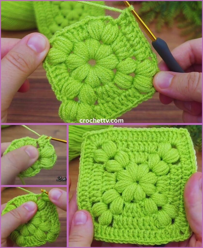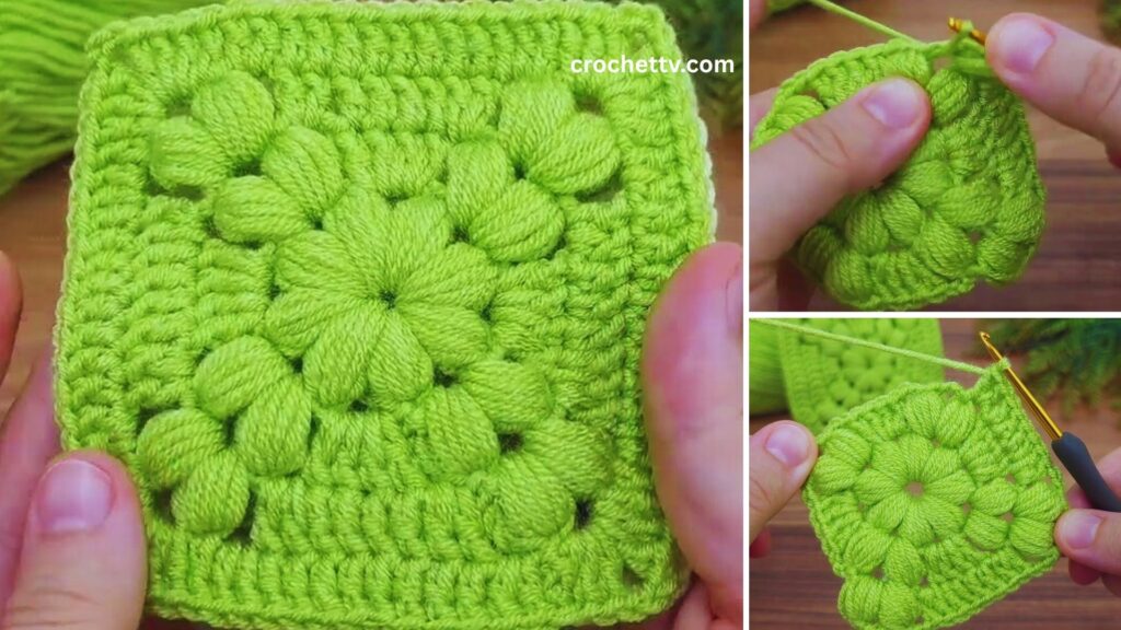 - Double Crochet (dc): A taller stitch, used for petals and the main body of the square.