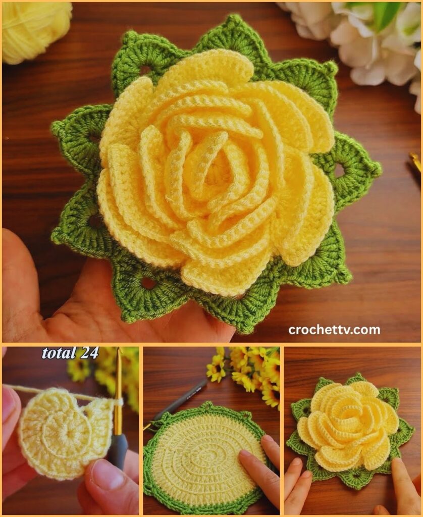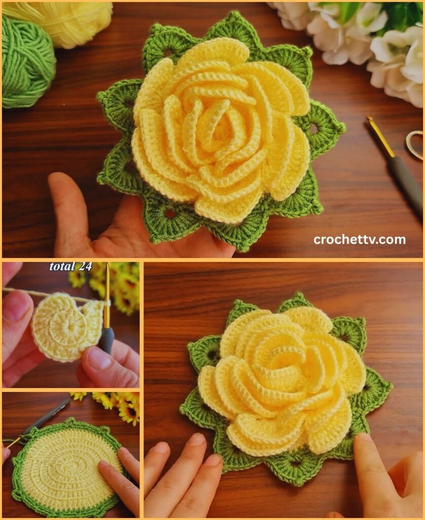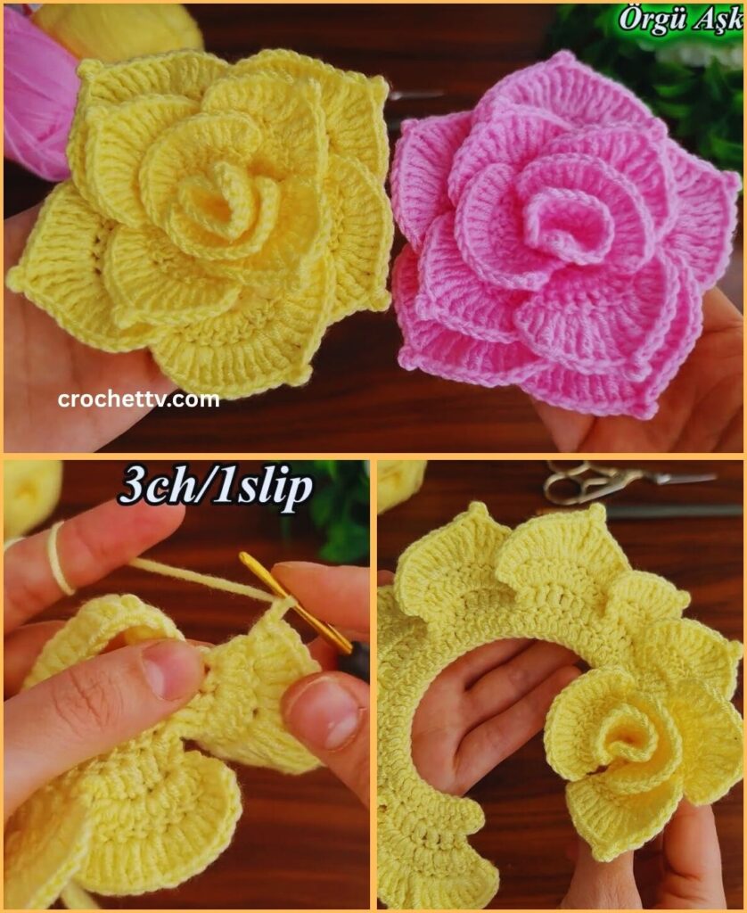 In this article, you’ll learn how to crochet a two-tone large rose flower with detailed petal layering and natural shaping, creating a 3D bloom that looks impressive and holds its form.