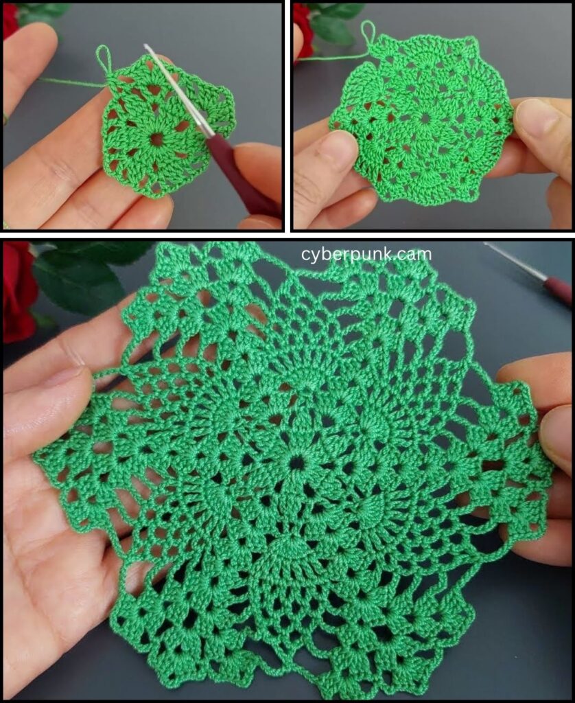 Here is a detailed guide on how to crochet delicate green flower earrings.