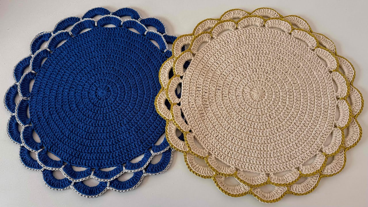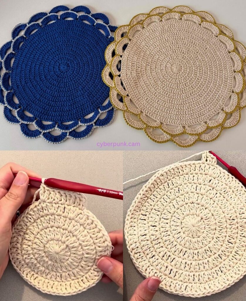 - Final Round (Reverse SC/Crab Stitch): Instead of a plain slip stitch join, work a round of Reverse Single Crochet (Crab Stitch) around the edge. This creates a neat, rope-like border that is perfect for placemats. Join with a sl st to the first stitch.