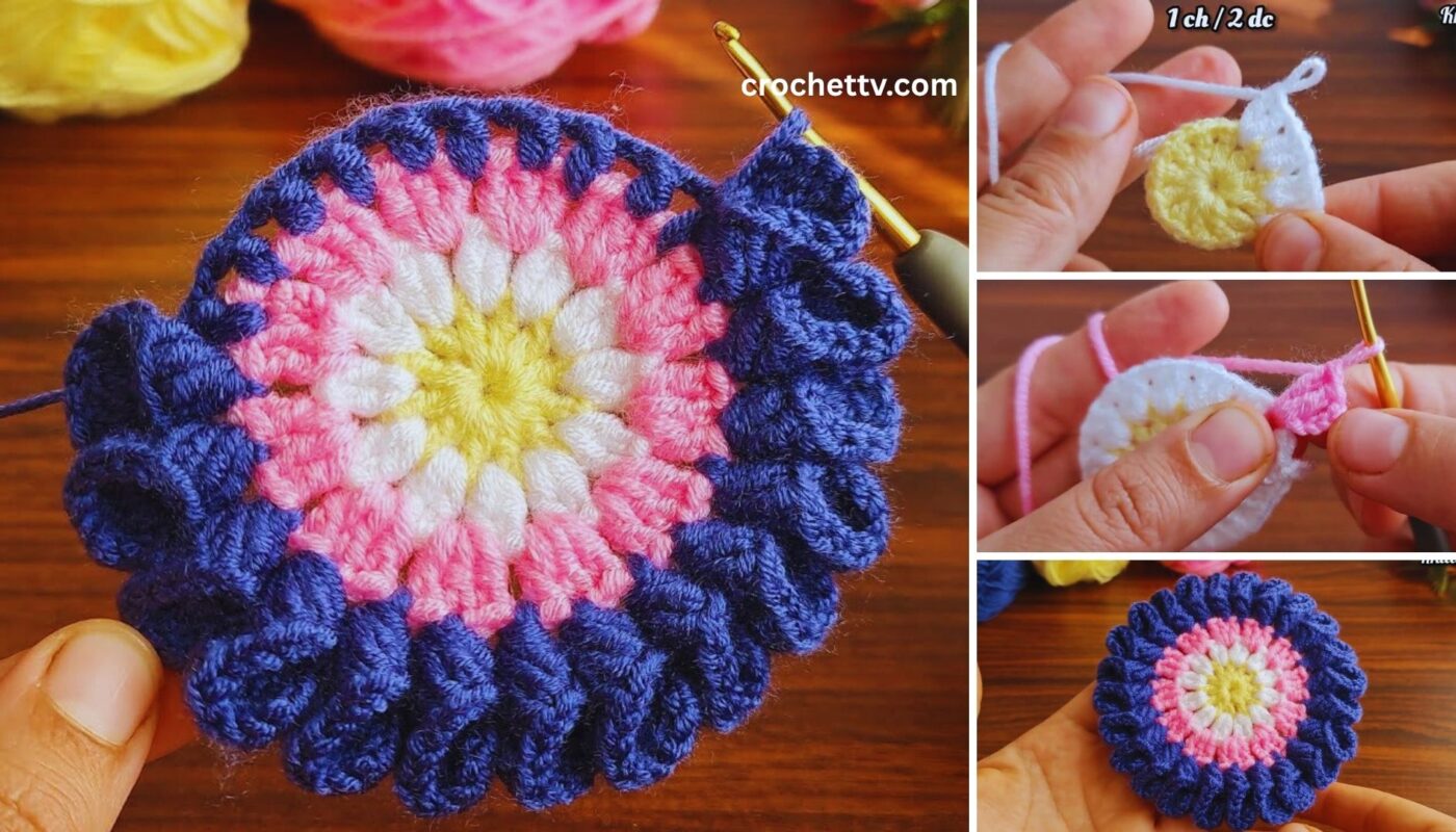 Let’s create a vibrant and eye-catching three-color flower coaster! This tutorial is designed for beginners eager to explore colorwork and add a delightful, handmade touch to their home. You’ll learn how to seamlessly incorporate three different yarn colors to create a beautiful, layered floral design that’s both practical and decorative.