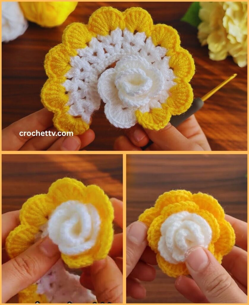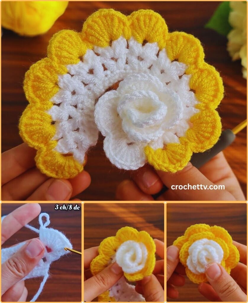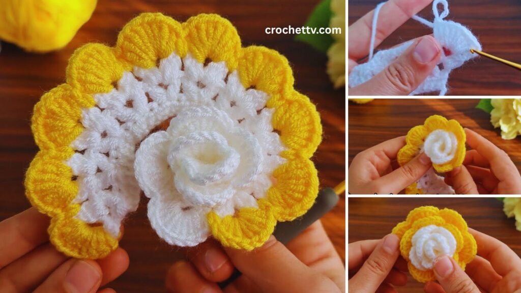 How to Crochet a Rose Flower with White and Yellow Color (Step-by-Step Tutorial)