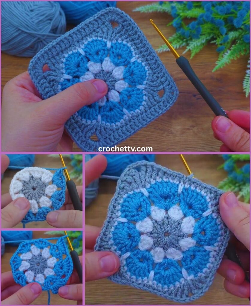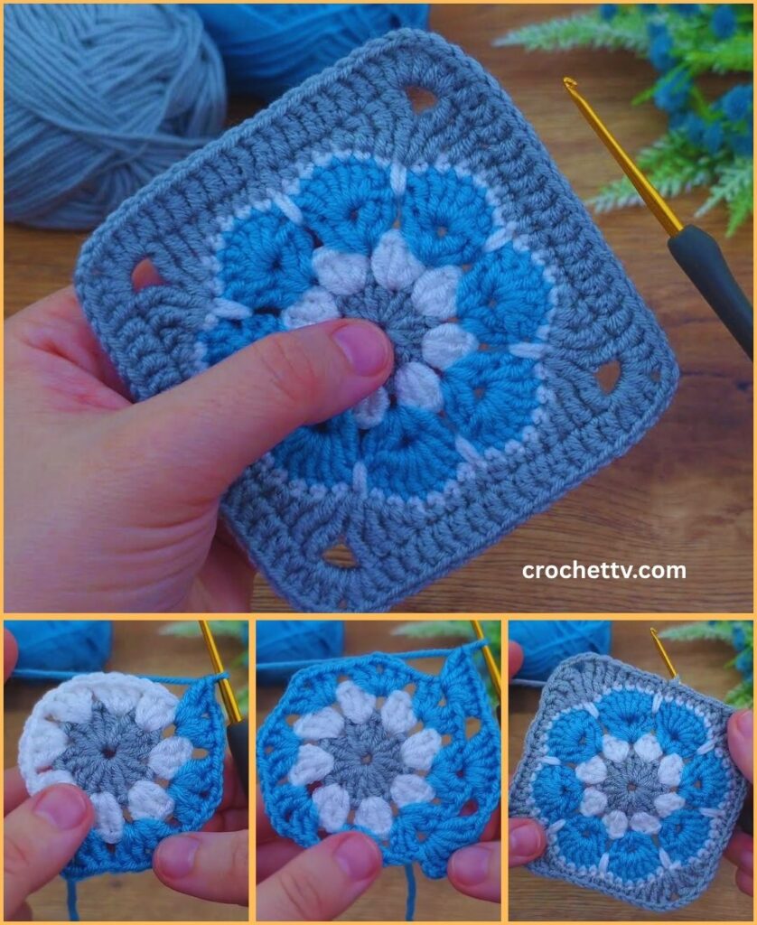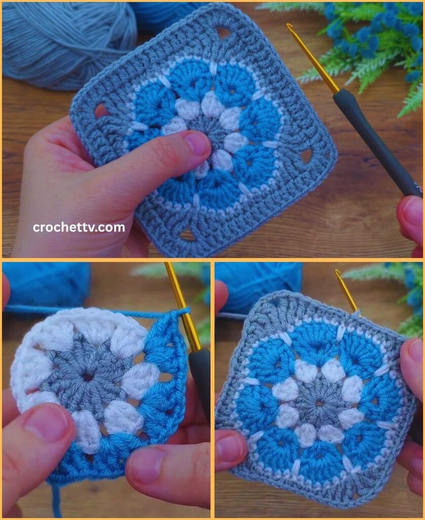 This is the main component of your blanket. We’ll create a layered flower within a classic granny square border. You will need many of these squares (e.g., 36 for a 30×30 inch blanket, or more/less depending on your desired size).