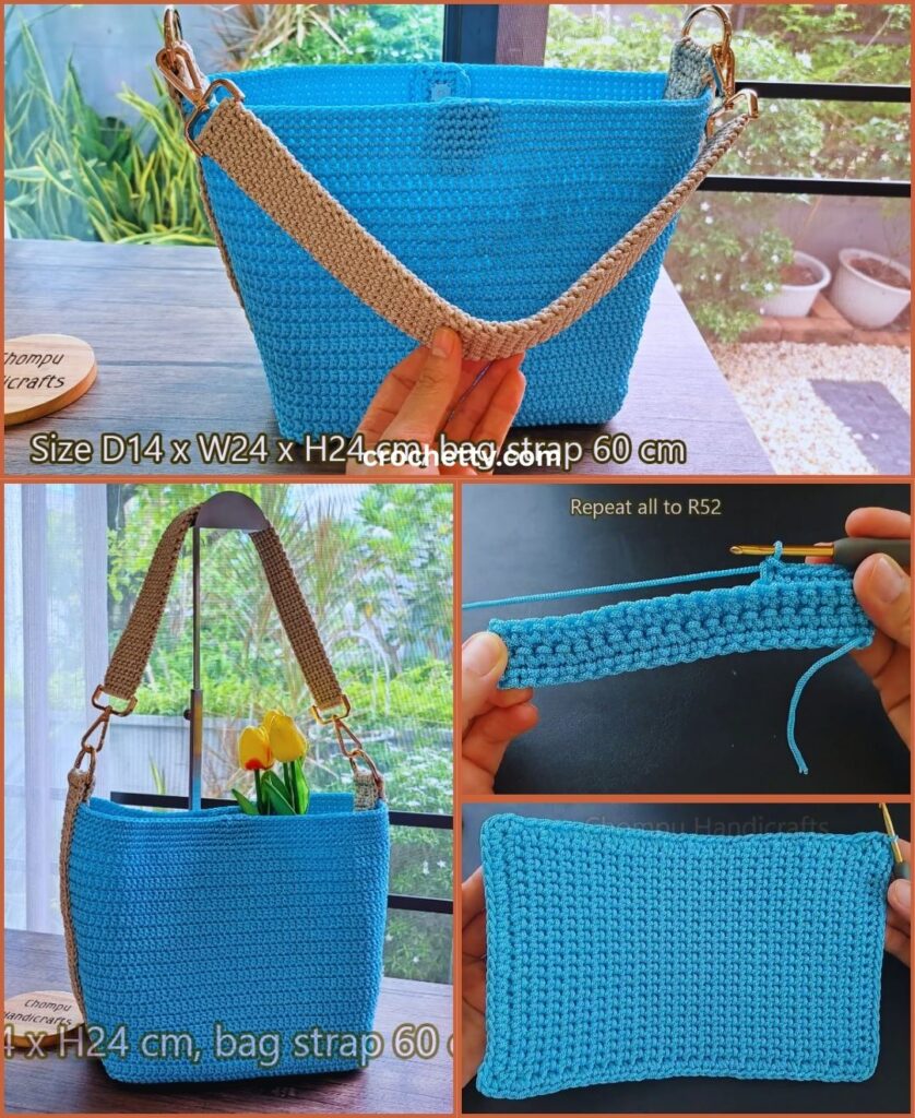 - The height is a personal preference. Hold it up as you go and see if you like the look. The hdc stitch works up faster than sc, which is great for a bag body!