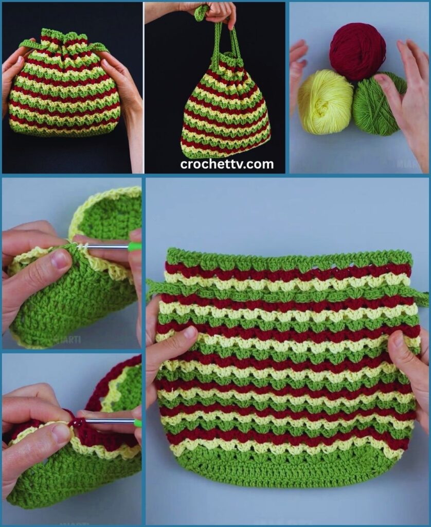 - Self-Correction Tip for Color Changes: Carry your inactive yarn up the inside of the bag if your stripes are close together to avoid many ends to weave in. Simply drop the color when not in use and pick it up when needed in the next round. Don’t pull too tightly.
