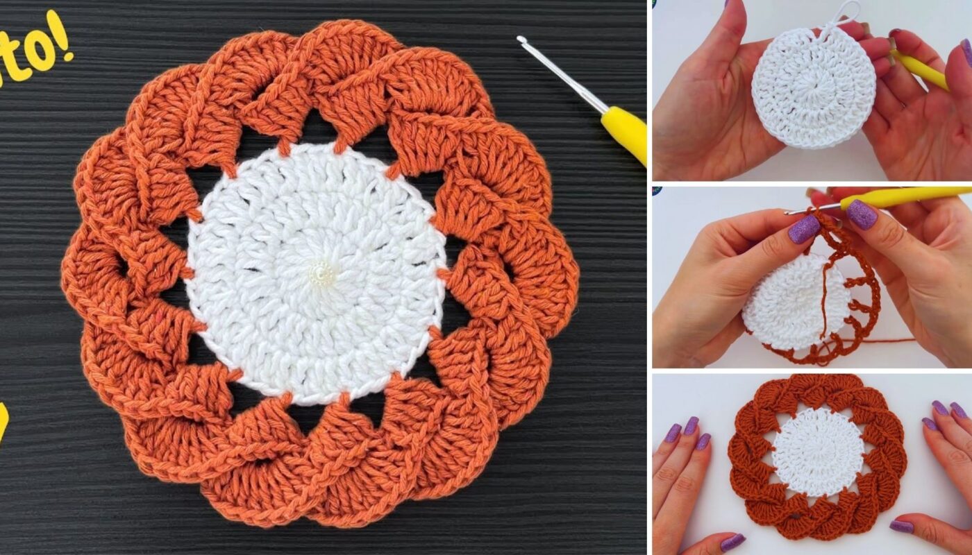 - Anchor the Handle: Skip approximately 4 stitches clockwise along the edge of your coaster (this is roughly the width of one scallop). Insert your hook into the next sc stitch between scallops and secure the chain with a sl st. You now have a chain loop attached to the side of your coaster.
