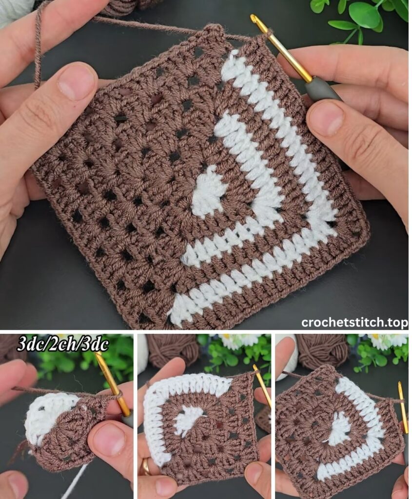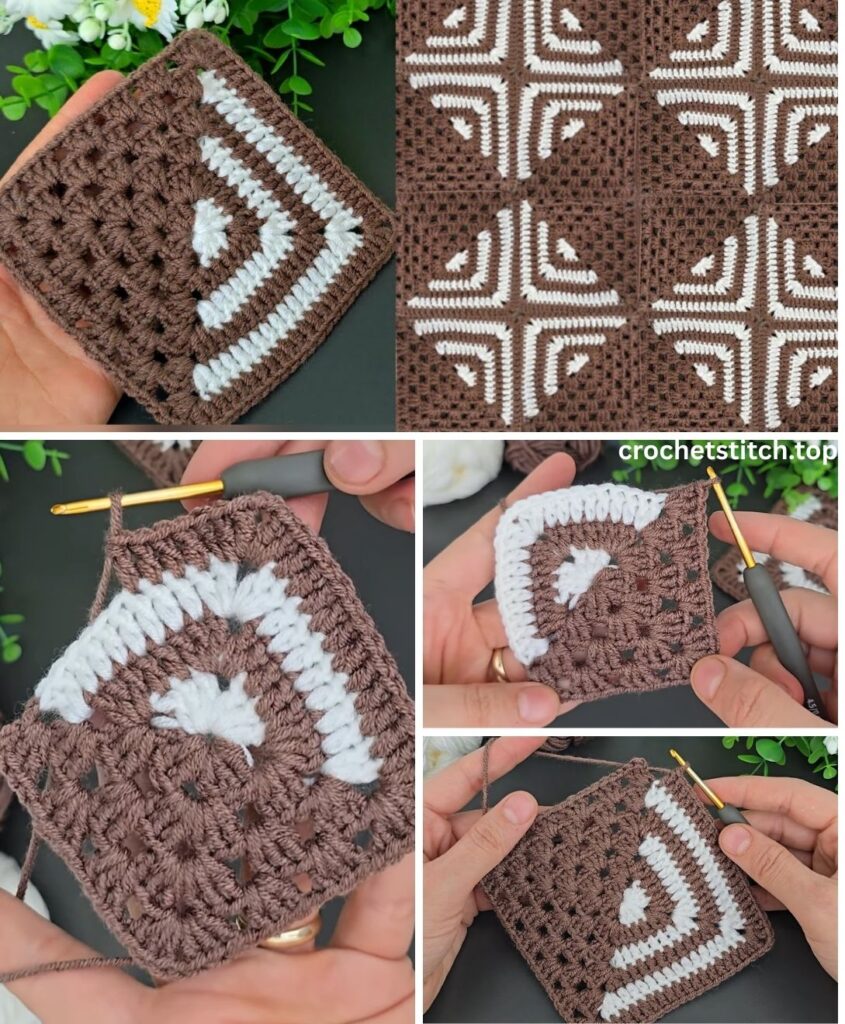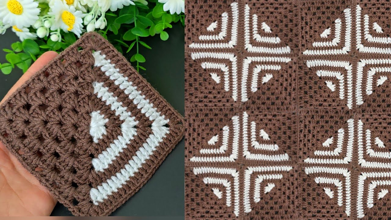 In this comprehensive guide, we will walk you through every step of creating a charming square with a classic brown and white design. We’ll start with a solid brown corner, introduce a crisp white center, and finish with a solid brown corner on the opposite side, resulting in a square with a thick, cozy brown border. It’s the perfect project for a cushion cover, a potholder (using cotton yarn!), or the first block of a future heirloom blanket.