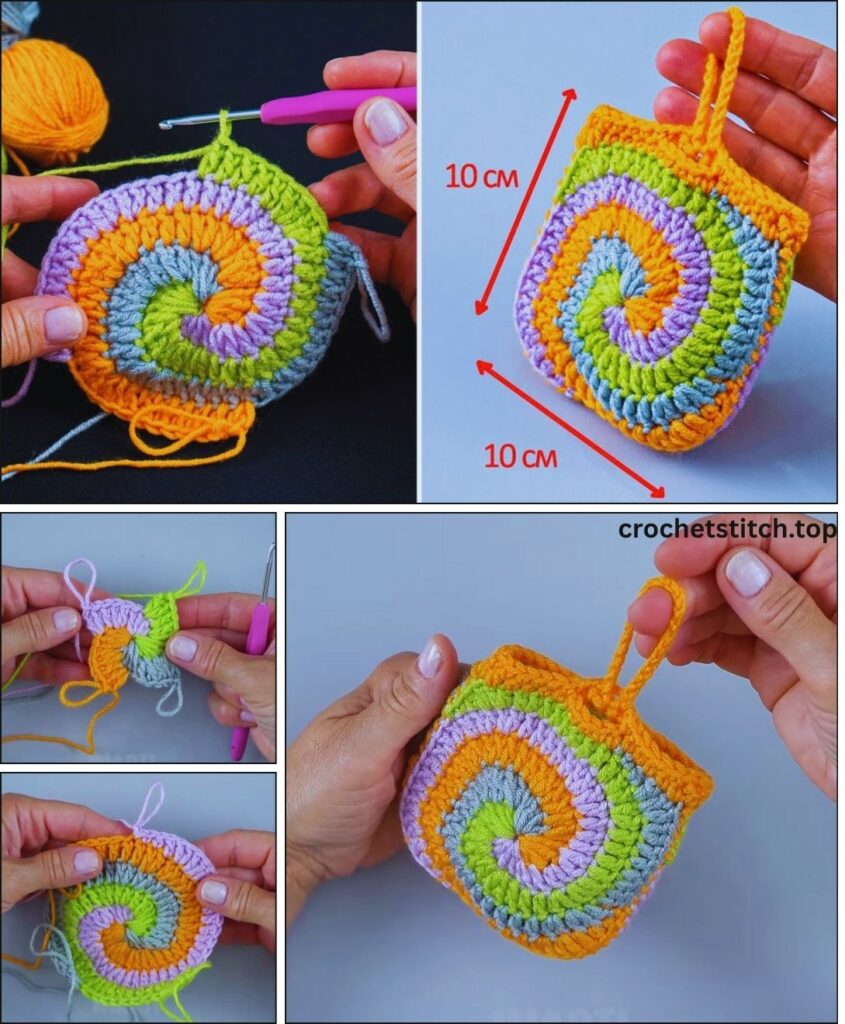 - Loop: Ch 10 (or enough chains to create a loop slightly larger than your button). Sl st back into the top edge of the pouch to form the loop. Fasten off.