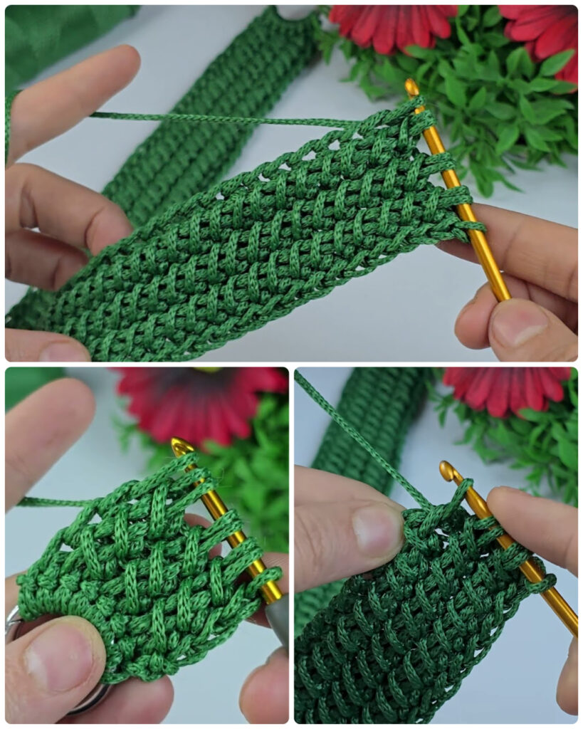 Tunisian crochet creates a fabric that is thick, dense, and woven-like. It has almost zero stretch, making it the absolute best choice for bag handles. The best part? For a narrow strap like this, you do not need a special Tunisian hookβyour regular crochet hook will work perfectly!
