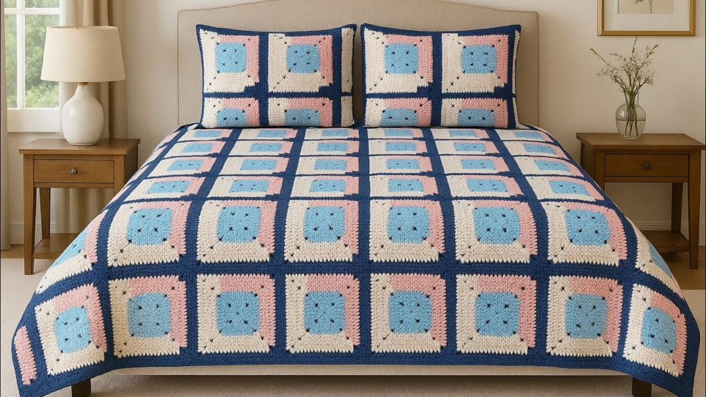 This tutorial focuses on the Solid Two-Tone Diagonal, a geometric staple that looks like a high-end floor tile when joined into a blanket or pillow cover.