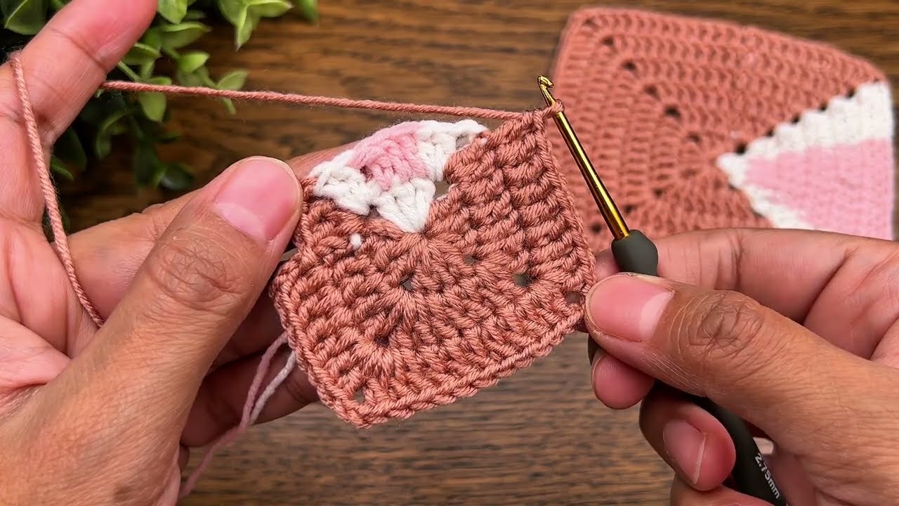 - Repeat: Work (3 dc, ch 2, 3 dc) in the next two corner holes, with a ch 1 between them.